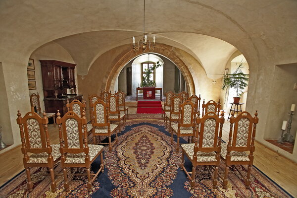 Svatební obřad – Erbovní sál (do 200 osob) Svatby pouze po předchozí domluvě se správou zámku. Do Erbovního sálu je zakázán vstup v jehlových podpatcích. (Z důvodu poškozování parketových podlah.) |