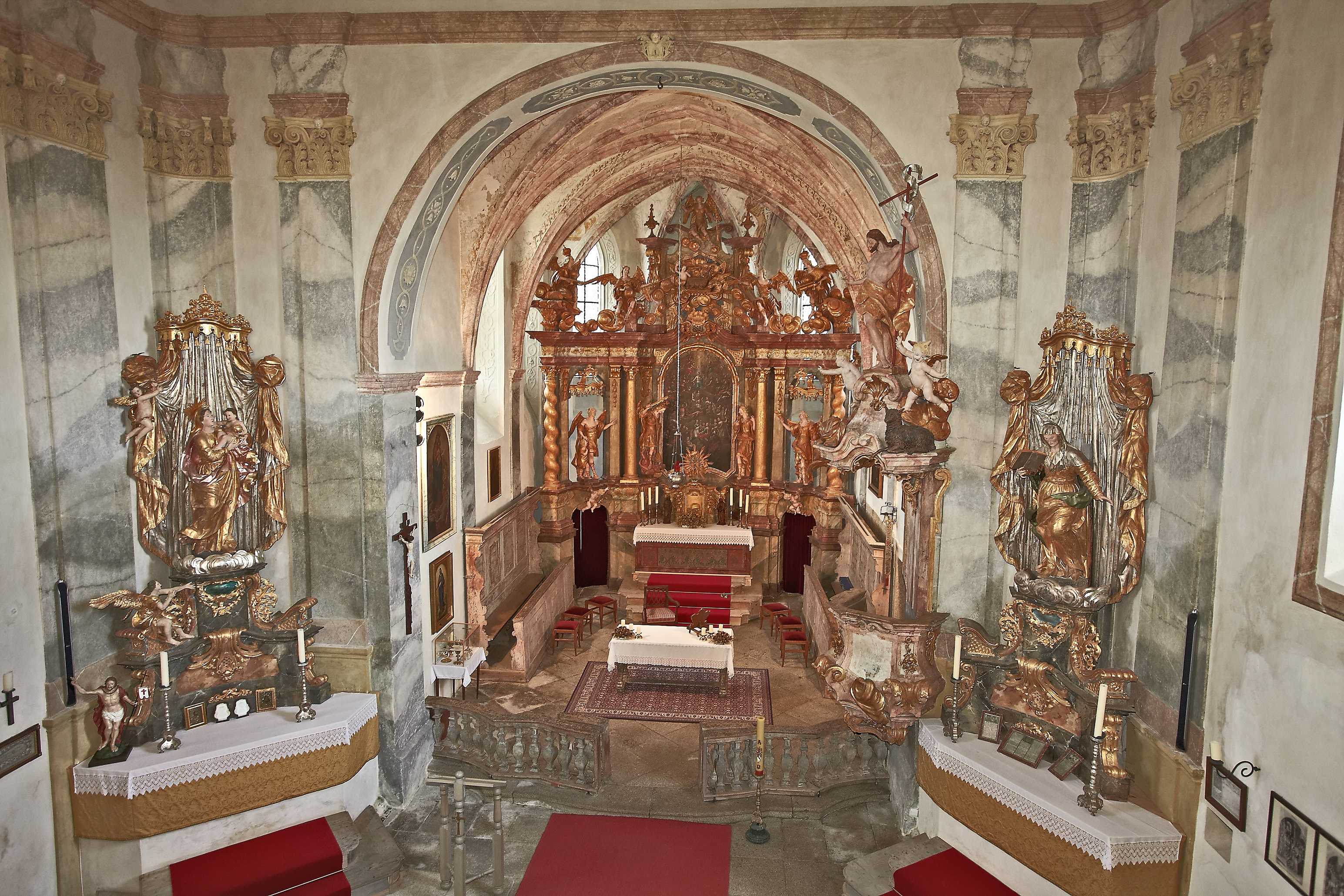 Die letzte grosse Umgestaltung der Kirche vor dem Jahre 1745 hatte keinen grundsätzlichen Einfluss auf das Exterieur der Anlage; auf eine wesentlich ausgeprägtere Weise machte sie sich allerdings im Interieur bemerkbar: die Kirche wurde mit einer neuen zweistöckigen Tribüne versehen und die Schiffsfenster wurden hergerichtet. Aus dem 18. Jahrhundert stammt auch die kostbare und stilistisch einheitliche Innenausstattung der Kirche. Die Autorschaft jener Einrichtung wird der Werkstatt des Pilsner Bildhauers Karel Legát zugeschrieben.